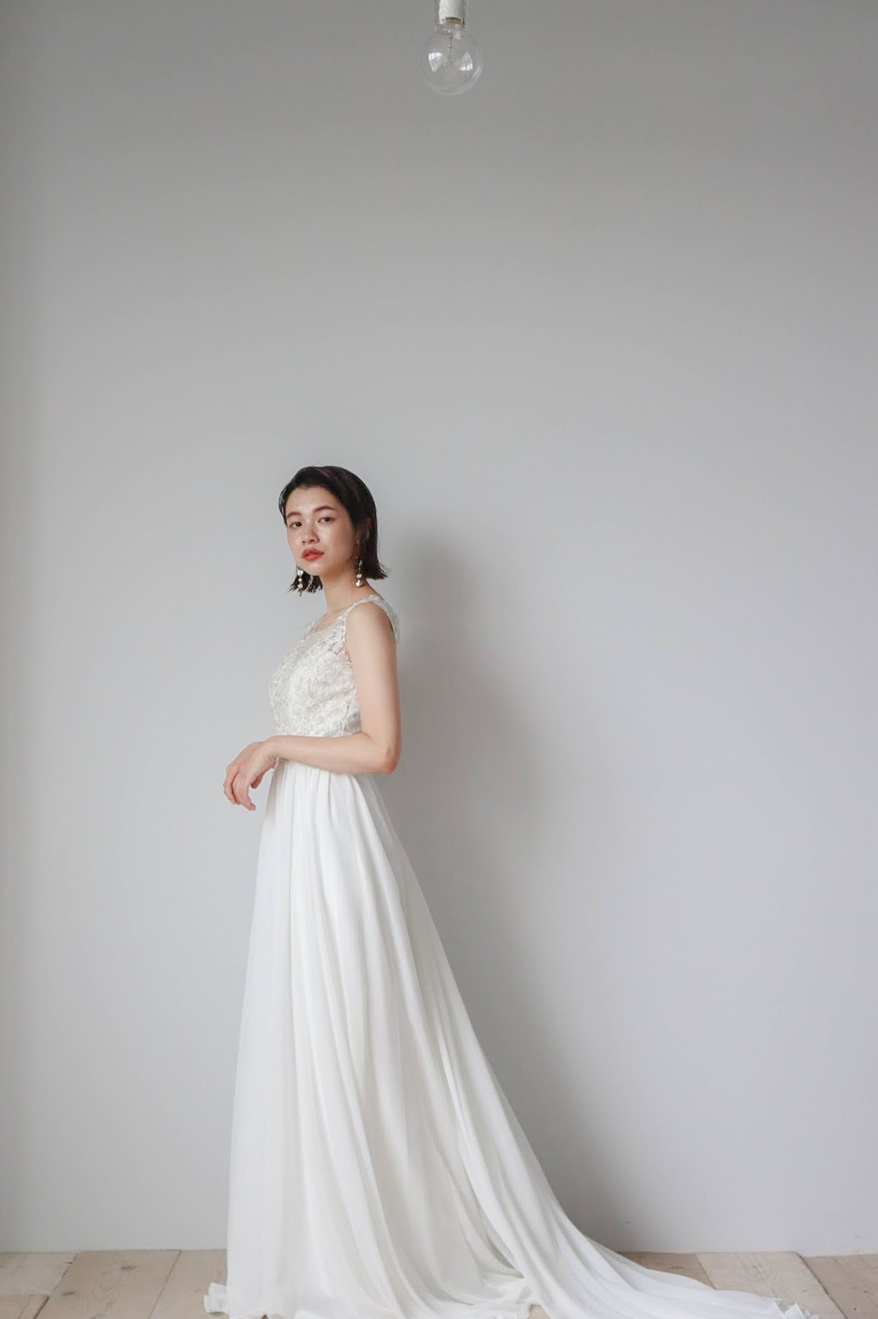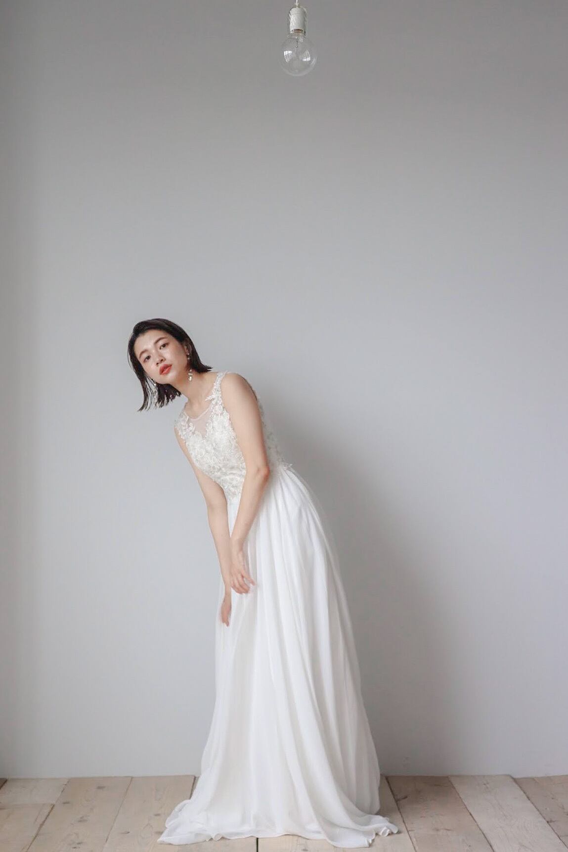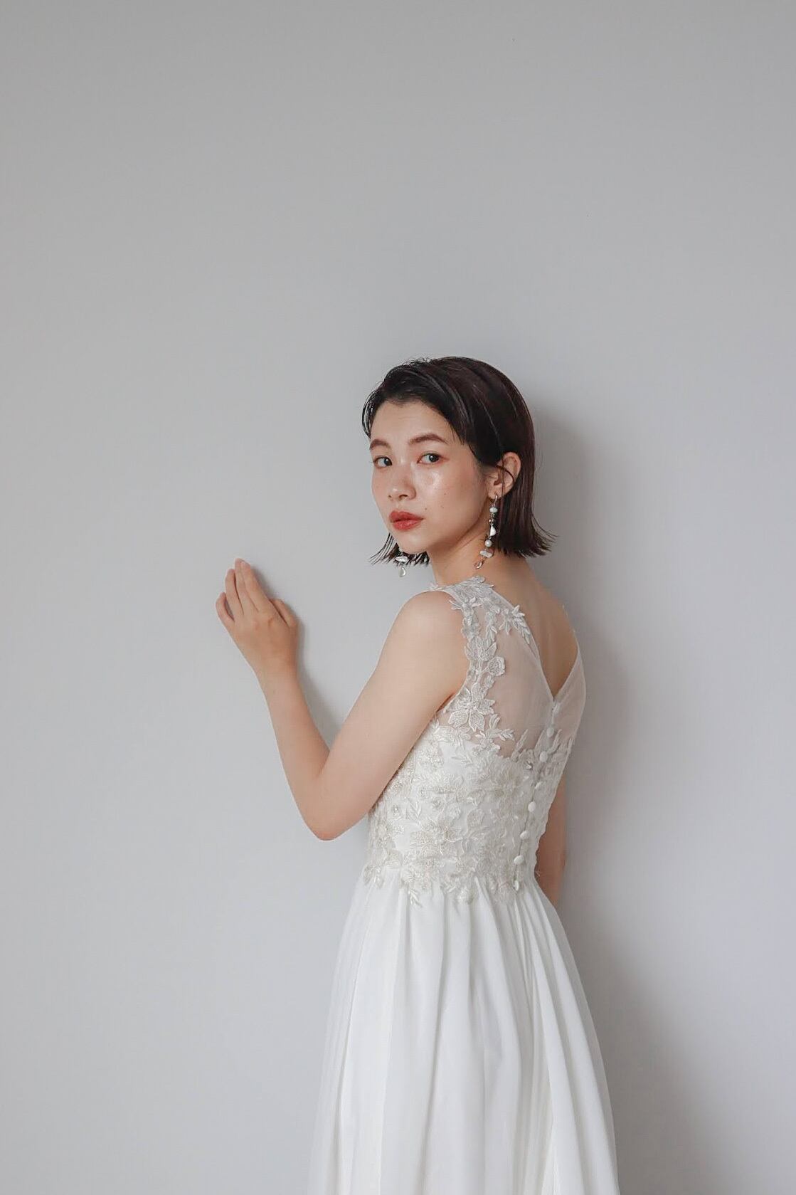 前撮り撮影や1.5次会向けのホワイトドレスでございます。