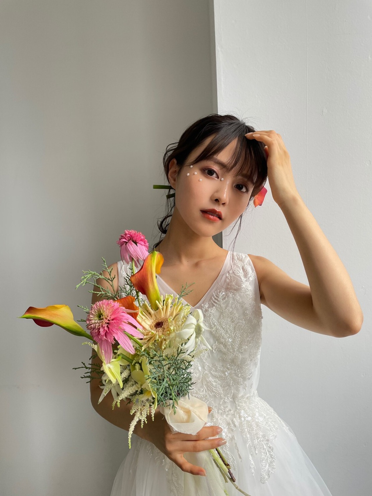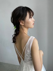 少し甘さのあるデザインなので、ヘアーやブーケは大人っぽくまとめるとバランスが整います♪